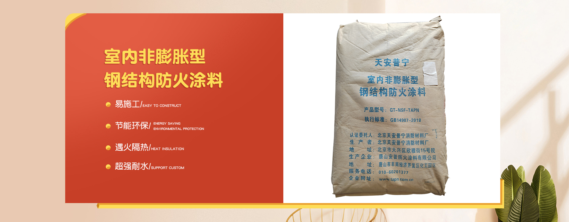 北京天安普寧消防材料廠是一家從事防火涂料二十多年生產(chǎn)企業(yè),企業(yè)集研制開發(fā)、生產(chǎn)銷售及各類防火涂料施工為一體。 企業(yè)員工總數(shù)100人,其中管理人員20人,科研人員10人,銷售50人,其他員工十多人。企業(yè)生產(chǎn)用地面積2000平方米左右,辦公用地面積1000平方米。擁有先進的生產(chǎn)設(shè)備20多臺,年生產(chǎn)量10000余噸。 企業(yè)擁有一支高學(xué)歷、資歷深的研發(fā)隊伍,以科學(xué)的管理,先進成套的生產(chǎn)流水線設(shè)備及完善的產(chǎn)品質(zhì)量檢驗措施,開發(fā)出TAPN系列防火涂料產(chǎn)品,可以滿足于各類建筑工程中不同基材、不同技術(shù)要求的防火保護,天安普寧系列防火涂料全部經(jīng)過《國家消防及阻燃產(chǎn)品質(zhì)量監(jiān)督檢驗中心》檢驗,理化性能合格,防火性能高,通過《應(yīng)急管理部消防產(chǎn)品合格評定中心》認證并獲得《消防身份信息標(biāo)識》。 企業(yè)結(jié)合多年的工程施工實踐經(jīng)驗,培養(yǎng)了一支專業(yè)有素、經(jīng)驗豐富、高質(zhì)量、效率高的防火涂料施工隊伍,可承攬各類高層、多層、大跨度廠房及網(wǎng)架鋼結(jié)構(gòu)防火涂料噴涂施工服務(wù)。 企業(yè)始終為用戶全心全意服務(wù),不斷滿足各建設(shè)單位的要求,共同為我國的建筑消防事業(yè)作出更大的貢獻,衷心感謝新老客戶的支持,全體員工熱情歡迎廣大用戶的光臨惠顧。